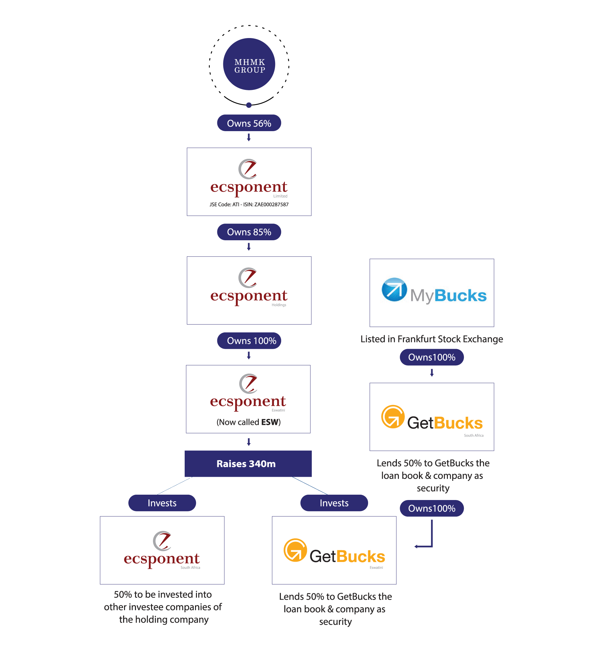 Ecsponent Limited was historically a large funder of MyBucks S.A (“MyBucks”) and its subsidiaries. The funding provided by Ecsponent to the MyBucks group was a significant profit generator for Ecsponent as the interest rate charged on the funding provided by Ecsponent to the GetBucks Eswatini was funded by Ecsponent Eswatini and the loan book and shares of the company were provided as security to Ecsponent Eswatini (this security has now disappeared, but is conveniently owned by Finclusion a subsidiary of MHMK).